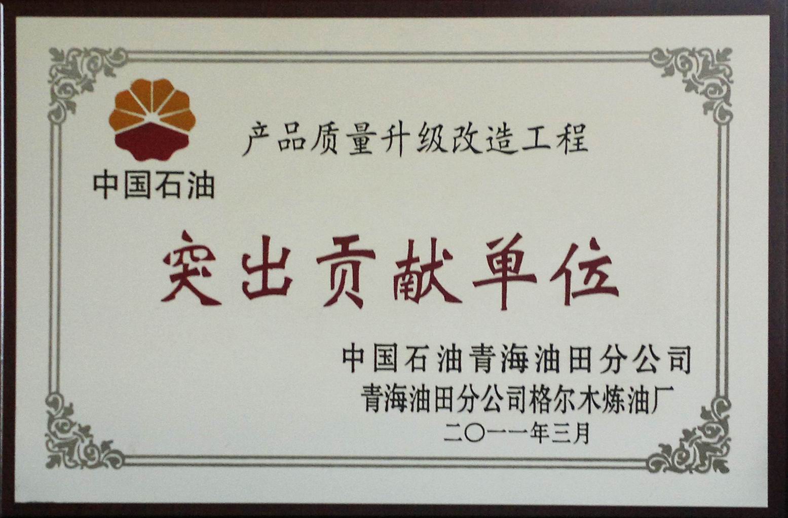2011年中石油突出贡献单位(格尔木炼油厂)