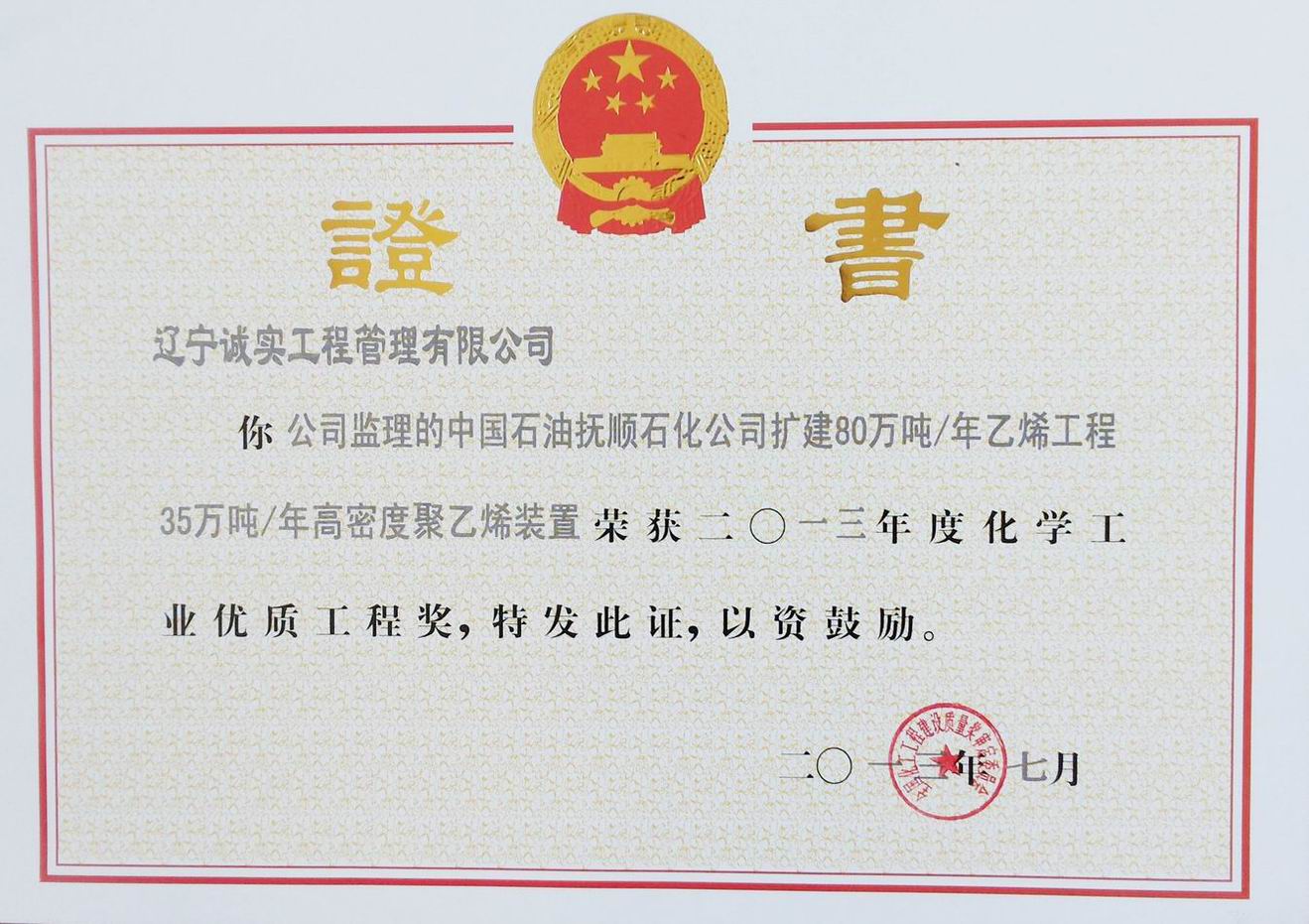 2013年化学工业优质工程奖(抚顺石化扩建)