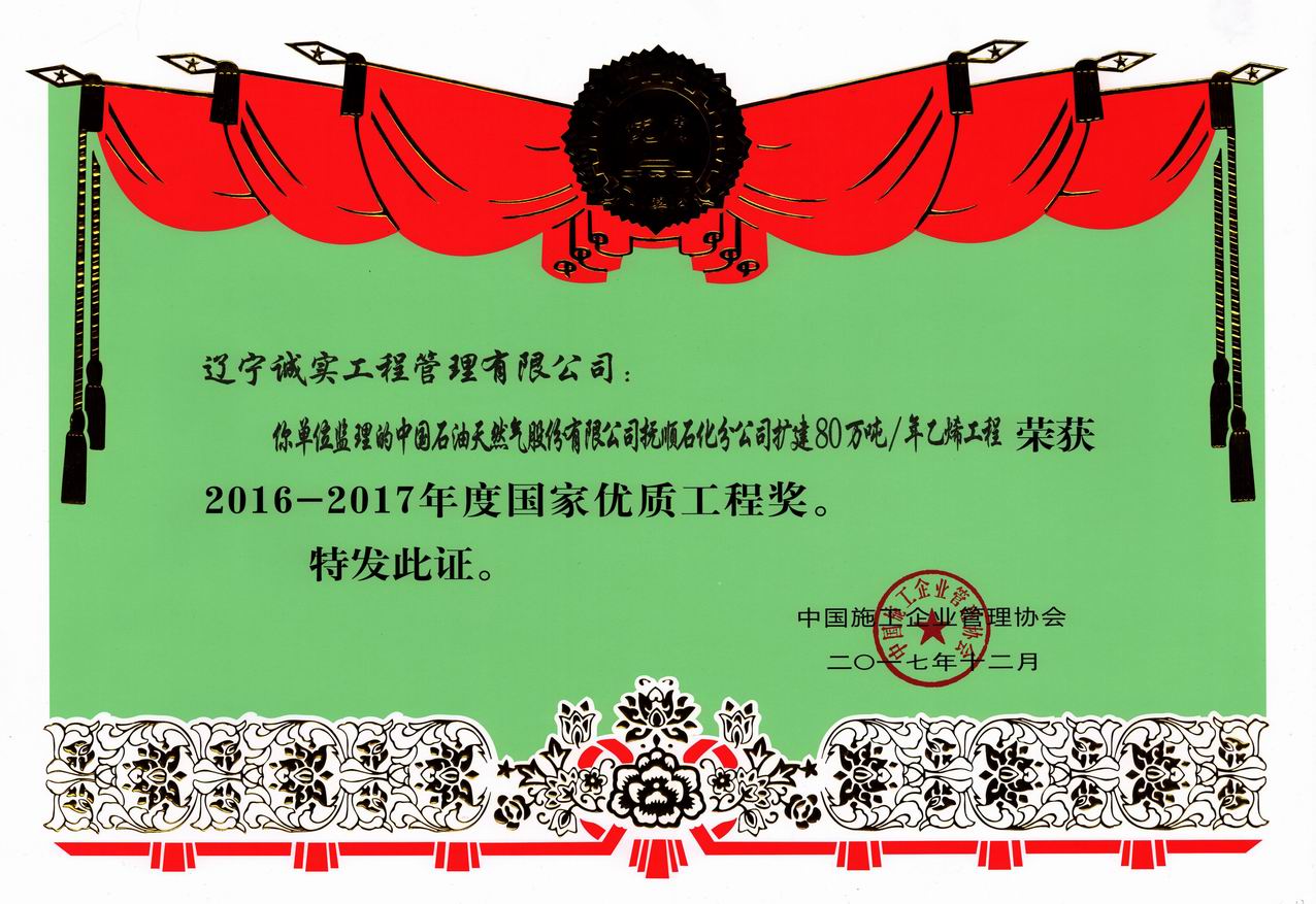 2016-2017年国家优质工程奖(抚顺石化扩建)