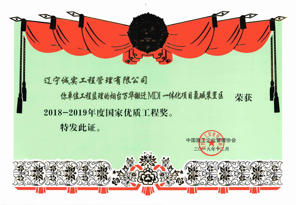 2018-2019年度国家优质工程奖(烟台万华搬迁MDI一体化项目氯碱装置区)