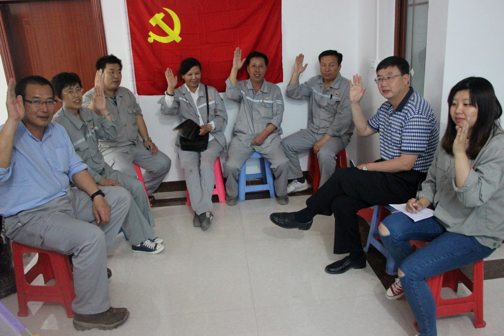 我公司监理的中海油惠州炼化“三聚”项目,去年末开工,现场近28名员工,其中党员8人。随着工程进展人员还要增加,建立基层党组织,发挥党员先锋模范作用,出色的为业主服好务,是公司党委工作目标。由党委提名,任润东、刘金刚、韩英丽三人组成党支部。选举通过后,支部书记任润东做了表态发言,党委书记孙学良就本项目意义,党员义务和责任做了讲话。