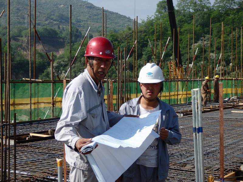 顾玉林同志现场检查1600聚合主框架钢筋绑扎情况