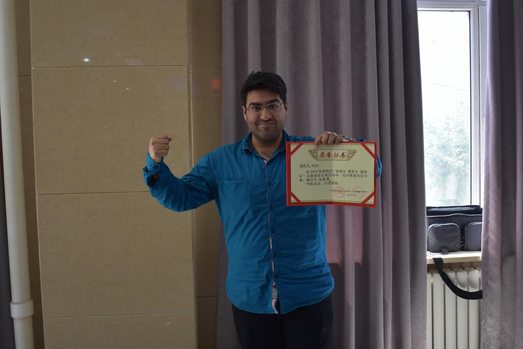 活动得到了全区机关、企事业单位广大青年职工的积极响应,我公司选送了实习员工福载礼,一位来自巴基斯坦的留学生参加了比赛。经过预赛的激烈角逐,福载礼与其他13名选手从初赛中脱颖而出,进入决赛。他们们从不同角度和不同层面阐述了对抚顺的热爱之情。他们用如火的激情表达投身家乡建设的决心;他们用不忘初心的使命践行新时代新青年的担当。他们深情地讲述一个个生动真实的故事,对“知家乡 爱家乡 建家乡”做出最好的诠释。他们的精彩演讲不时赢得评委和现场观众的阵阵掌声。