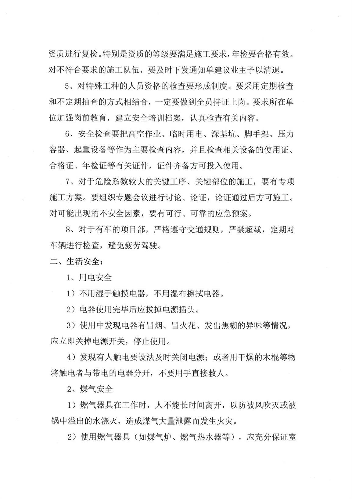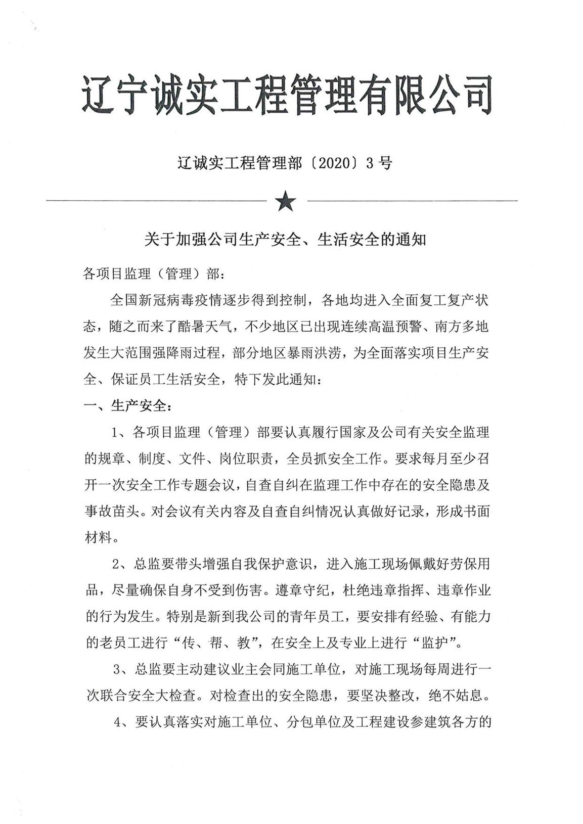 关于加强公司生产安全、生活安全的通知--工程管理部3号文件