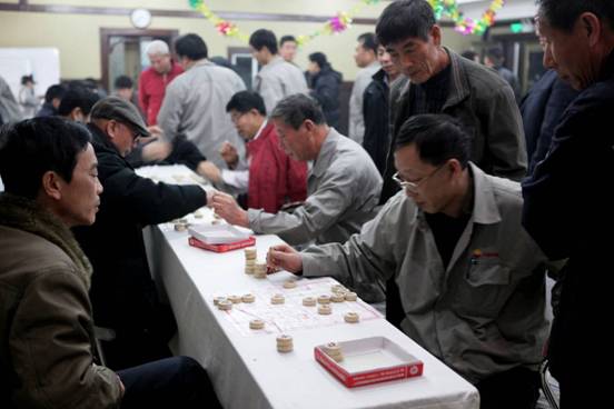 公司员工在进行象棋比赛