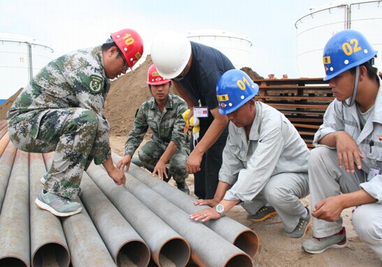 监理、业主、承包商认真检查进场管材材质、规格、壁厚